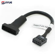 Converts 20-pin USB 3.0 female to 9-pin USB 2.0 male