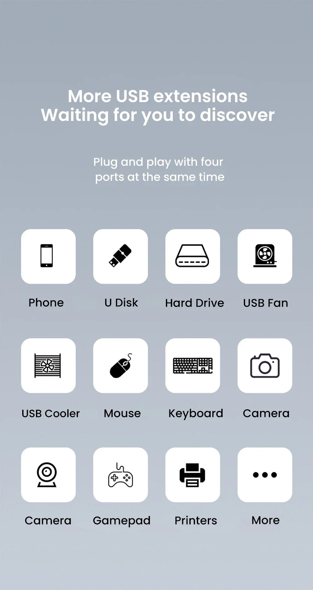 Expands one port into 4 for USB 3.0 and USB 2.0 devices
